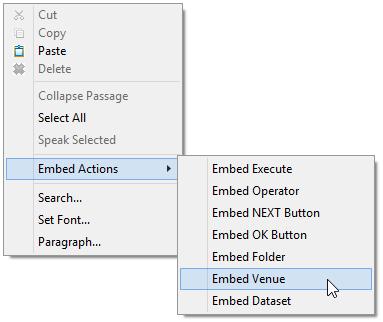 Once embedded, clicking the Venue button will show a file directory set to the default location and the
